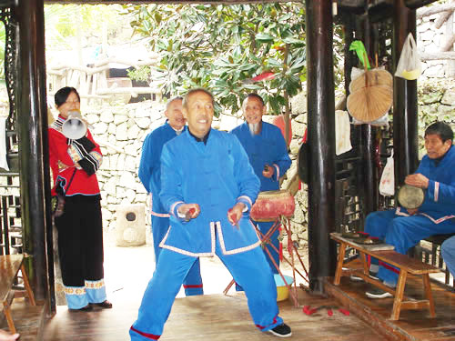 | 每年的正月初一到正月十五,藝人們結(jié)伴走村串寨拜年,表現(xiàn)對象不分貧富,戶戶必到。如遇貧寒之家,表演者將別家贈送的禮品相送,意在人人過節(jié)歡喜。充分體現(xiàn)出土家人熱情好客,心地善良的民族性格。對加強民族間團(tuán)結(jié)有一定的作用。