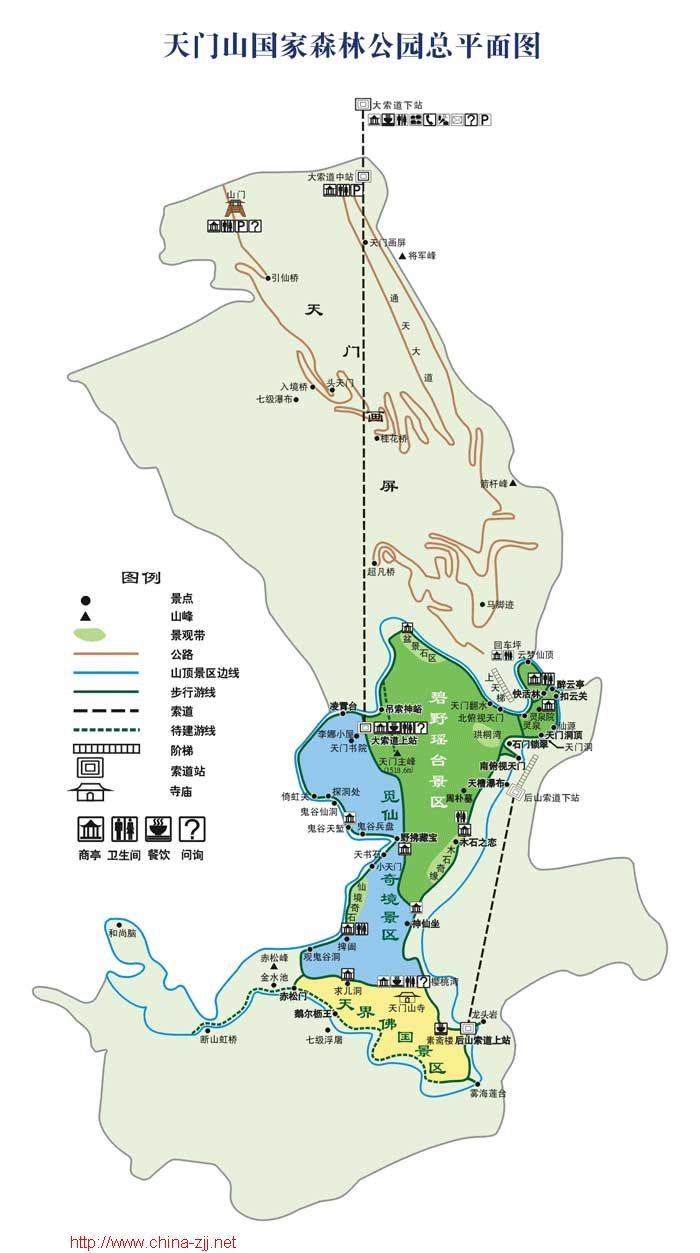 天門山旅游圖,天門山游覽平面圖