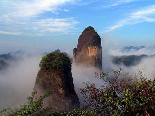 | 莨山,位于湖南省新寧縣境內(nèi)。南與桂林相連,北與張家界呼應,是國內(nèi)最為典型的丹霞地貌風景區(qū),是國家重點風景名勝區(qū),又是國家地質(zhì)公園,總面積108平方公里,轄紫霞峒、 扶夷江、駱駝峰、牛鼻寨、八角寨五大景區(qū),地質(zhì)結構奇特,山、水、林、洞渾然一體。境內(nèi)有形神兼?zhèn)涞膶④娛⑽┟钗┬さ鸟橊劮、鬼斧神工?天下第一巷"、地造天設的鯨魚鬧海、氣勢磅礴堪稱亞洲第一的天生橋、高聳入云而又十分逼真的辣椒峰,這便是嘆為觀止的莨山六絕,這是大自然對莨山的恩賜,每一絕都舉世無雙。莨山還生長繁衍著銀杉、珙桐、華南虎、云豹、靈貓、大鯢等珍稀動植物,也為莨山的天然景色增添了無限靈動與生氣。這里出土有10萬年前的獼猴頭骨化石,有4500年前的新石器文化遺址,有清化農(nóng)民起義的寨堡,有晚清重臣劉坤一、劉長佑、江忠源的宗祠、墓葬,有異彩紛呈的民族風情,有膾炙人口的華采詩賦,明代縣人陳永猷留下了"夫夷(新寧古稱)勝景天成就,攝杖歸來入夢頻"的美譽,著名詩人艾青留下了"桂林山水甲天下,莨山山水賽桂林"的喟嘆。