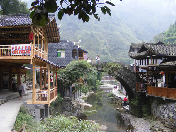 古老的苗寨:矮寨的德夯非常有名,它是一個典型的苗族村寨,湘渝公路最險的一段就經(jīng)過這里,在水平的100米之內(nèi),公路共繞了13個彎,上升了數(shù)百米,如果你來這里,勇氣可以得到很好的鍛煉。在矮寨以西10公里的地方,有著名的流紗瀑布,據(jù)說該瀑布的落差達(dá)216米,雄踞全國之最。由于峽谷的風(fēng)很大,使得水流左右飄舞,“流紗”二字恰好能描繪出它的特點(diǎn)。