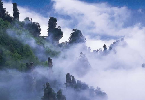 下 午: 中餐后游玩世界自然遺產(chǎn)的核心---袁家界景區(qū)(包含電影《阿凡達》中“哈利路亞山”原型“乾坤柱”、天下第一橋、九天玄梯、乾坤柱、連心橋、中韓友誼亭、神龜問天、迷魂臺等景點) 。袁家界,是張家界森林公園山頂觀景最為奇特壯觀景區(qū)之一,勝于黃石寨和天子山景區(qū)…之后便乘坐大約20分鐘的環(huán)保車可到大觀臺住宿地。