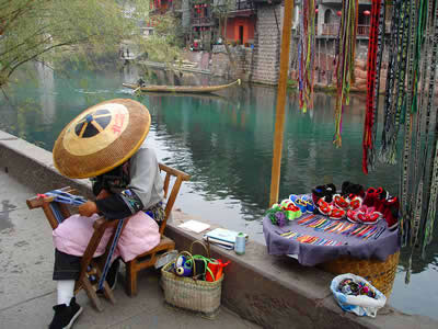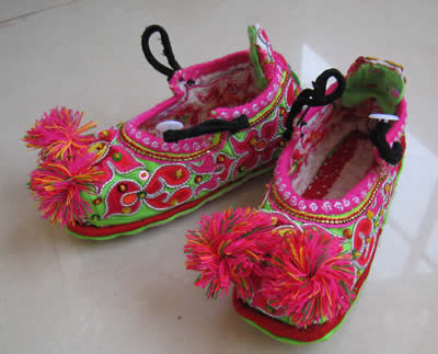 刺繡 刺繡。是土家姑娘在直紋平布上,按照布紋的經(jīng)緯和預(yù)先繪畫的花樣與底色不同的絲線繡成圖案。舊時(shí)姑娘們穿的繡花衣服,繡有服飾花邊、胸花、帽花,此外繡花枕頭、繡花荷包等也是精巧的手工工藝品。土家刺繡在配色上有自己的講究與習(xí)慣,一般選用青、藍(lán)、大紅等深色布料作底布,用淺色繡線制作圖案,或者相反,兩種用法的結(jié)果使繡品顯得質(zhì)樸逼真,色澤鮮艷,對比強(qiáng)烈。傳統(tǒng)圖案有“花開富貴”、“龍鳳呈祥”、“鴛鴦戲水”、“喜鵲鬧梅”、“松鶴同壽”等,分室內(nèi)、衣著、工具、行李裝飾等多種種類。在景區(qū),土家婦女邊繡邊賣的精美鞋墊,深受海內(nèi)外游客喜愛。