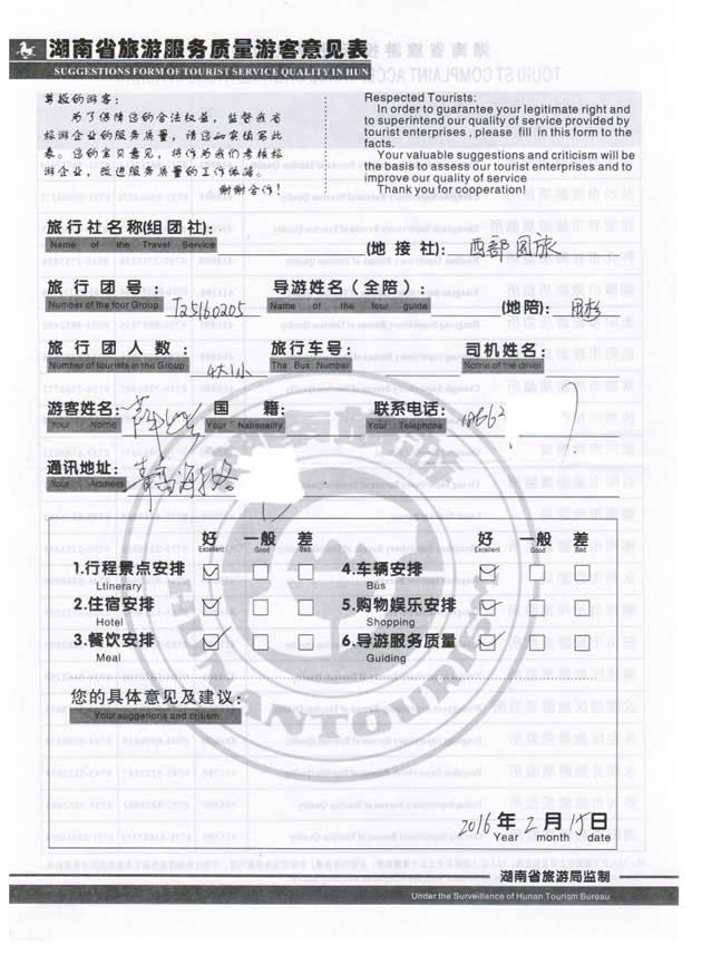 【該游客接待反饋意見單掃描】