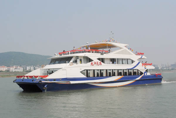 九洲龍?bào)J豪華游船船長42米,寬12米,擁有280個(gè)客位,游輪采用了國際先進(jìn)的造船技術(shù),流線型的外觀設(shè)計(jì)、造型典雅時(shí)尚。船身共分為3層,可滿足游客餐飲、觀光、娛樂、會(huì)務(wù)等多種需求。
