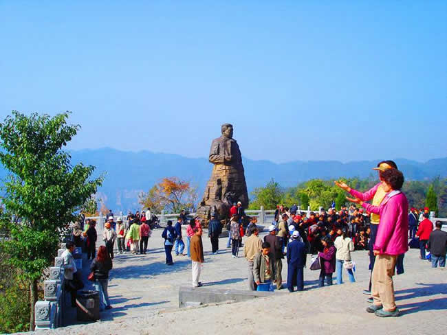 坐落在1200米的千層巖左側。公園內,屹立在“云青巖”上的賀龍銅像與大自然連為一體,形成獨特的藝術風格。這是我國近百年塑造的最大的一尊銅像。神堂灣:神堂灣是一個神秘的天國,一座綠色的迷宮,至今無人問津。一個凹形深谷,四面是刀切般的絕壁,終日霧雨霏霏。向下層巒疊嶂,形成五級神堂,谷底深不可測,被稱作“神秘的天國”。