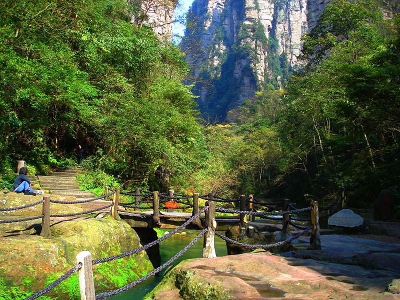 上 午:張家界市區(qū)出發(fā),乘車直接從武陵源門票站進(jìn)入【張家界國家森林公園】游玩(門票245元+5元景區(qū)保險(xiǎn),游覽兩天);徒步游覽“世界上最美麗的峽谷”---金鞭溪景區(qū)(約2.5小時(shí))(包含觀音送子、豬八戒背媳婦、神鷹護(hù)鞭、劈山救母、西游記外景拍攝地、千里相會(huì)等景點(diǎn)。)提示:走完金鞭溪后,沿龍鳳庵方向上楊家界。還可以從八里坡徒步約1.5小時(shí)上楊家界或者乘坐楊家界索道(需要乘坐者自行購買)上山,在指定時(shí)間地點(diǎn)集合。